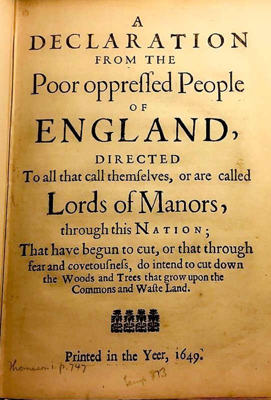 Figure 4. Frontispiece of Digger pamphlet ‘A declaration from the poor oppressed people of England’ (1649). Available in the public domain and here.