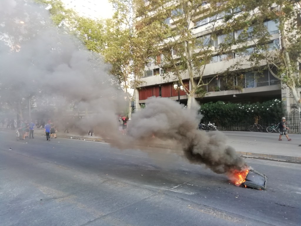 Figure 1. Burning bin in Santiago, Chile during an anti-police demonstration (31 January 2020).