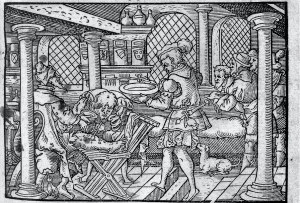 Figure 3. Patients being treated for syphilis, from Paracelsus, Erster [-der dritte] theil der grossen wundartzney [1536]. Source: Wellcome Collection. CC BY 4.0.