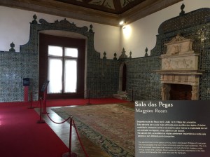 Figure 3. Routing, demarcations and signage in the Magpies Room at the Palácio de Sintra, Portugal, October 2021. Photo: E. Griffin.