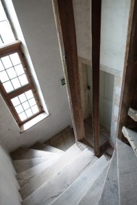 Figure 4: Staircase of the west-tower looking at the entrance of the second floor tower room. Source: Miara Fraikin.