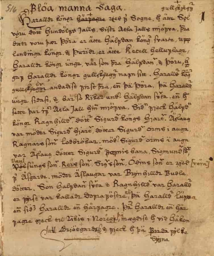 Figure 1. The first page of Flóamanna saga, from the seventeenth-century manuscript AM 516 4to, held in The Árni Magnússon Institute (Stofnun Árna Magnússonar í íslenskum fræðum). Available in the public domain.